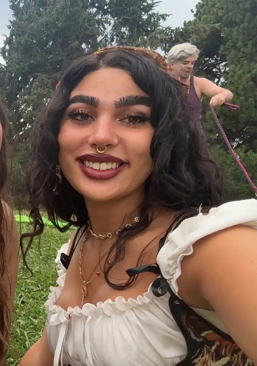 Someone with a widened or elongated chin.